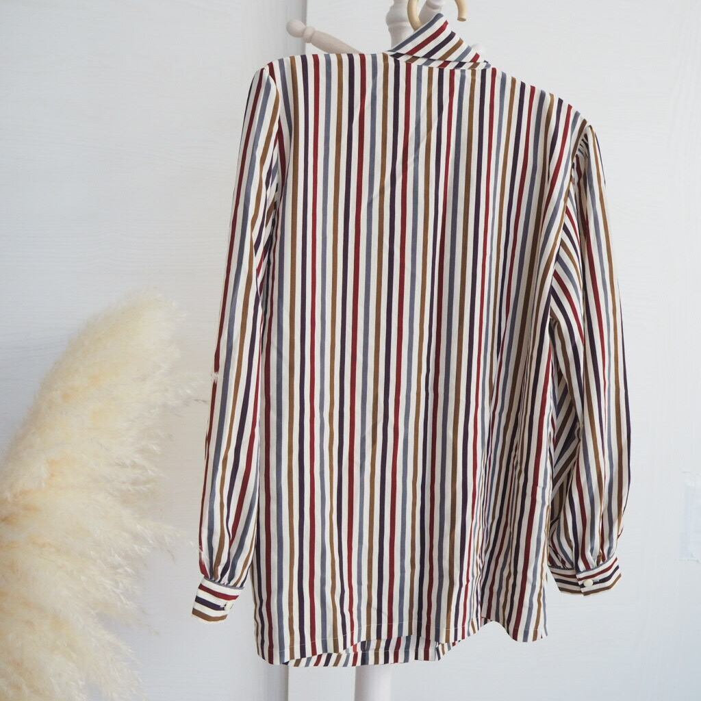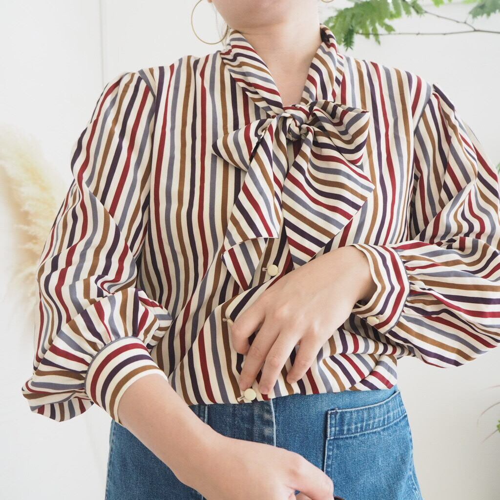 multi stripe ribbon tie blouse/マルチ ストライプ リボンタイ ブラウス